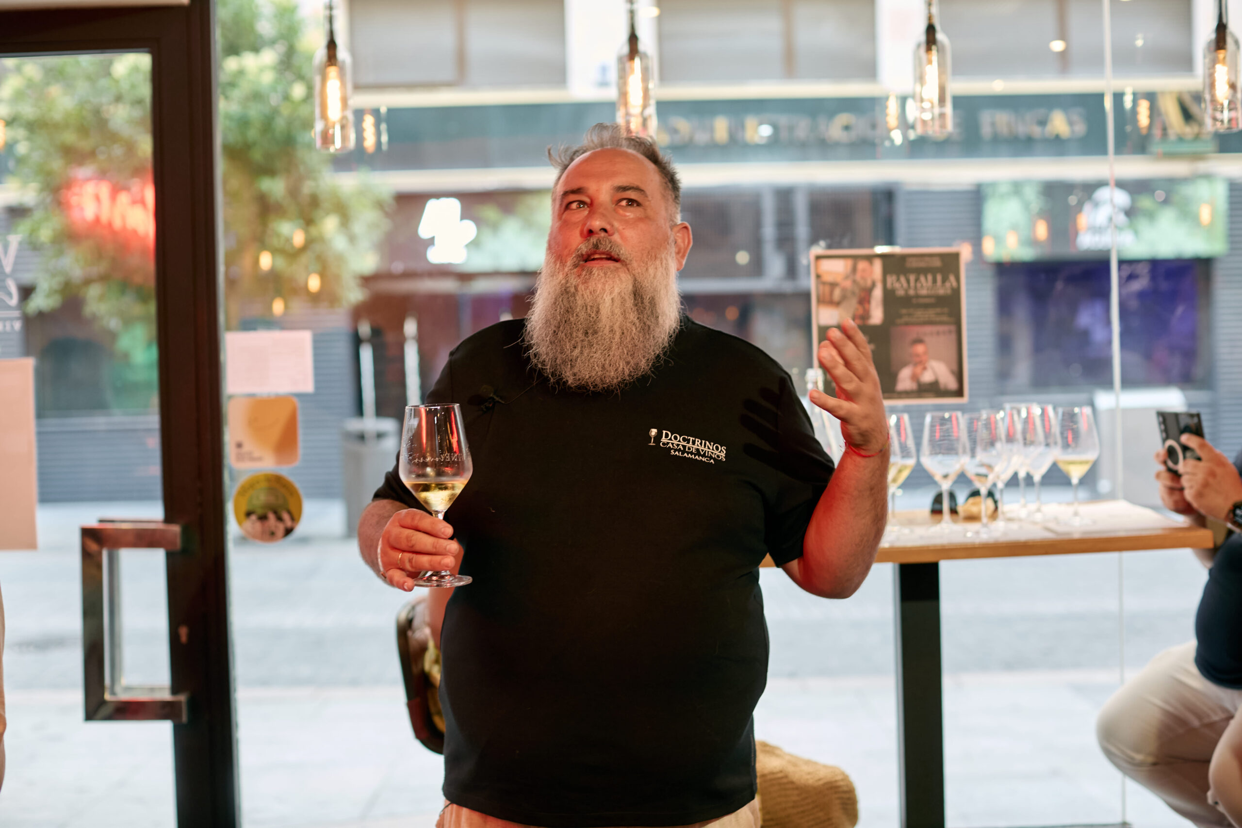 La intención es crear comunidad, compartir momentos con compañeros que entienden el vino como nosotros. Por ello pensamos en Marco, propietario de Casa de Vinos Doctrinos, un local que lleva siendo toda la vida referencia en Salamanca del buen beber, y cuando Marco se hizo con él hace dos años y medio continuó con el espíritu de ser un sitio de referencia en Salamanca. Marcó está acompañado de su hermana María, un tandem perfecto.