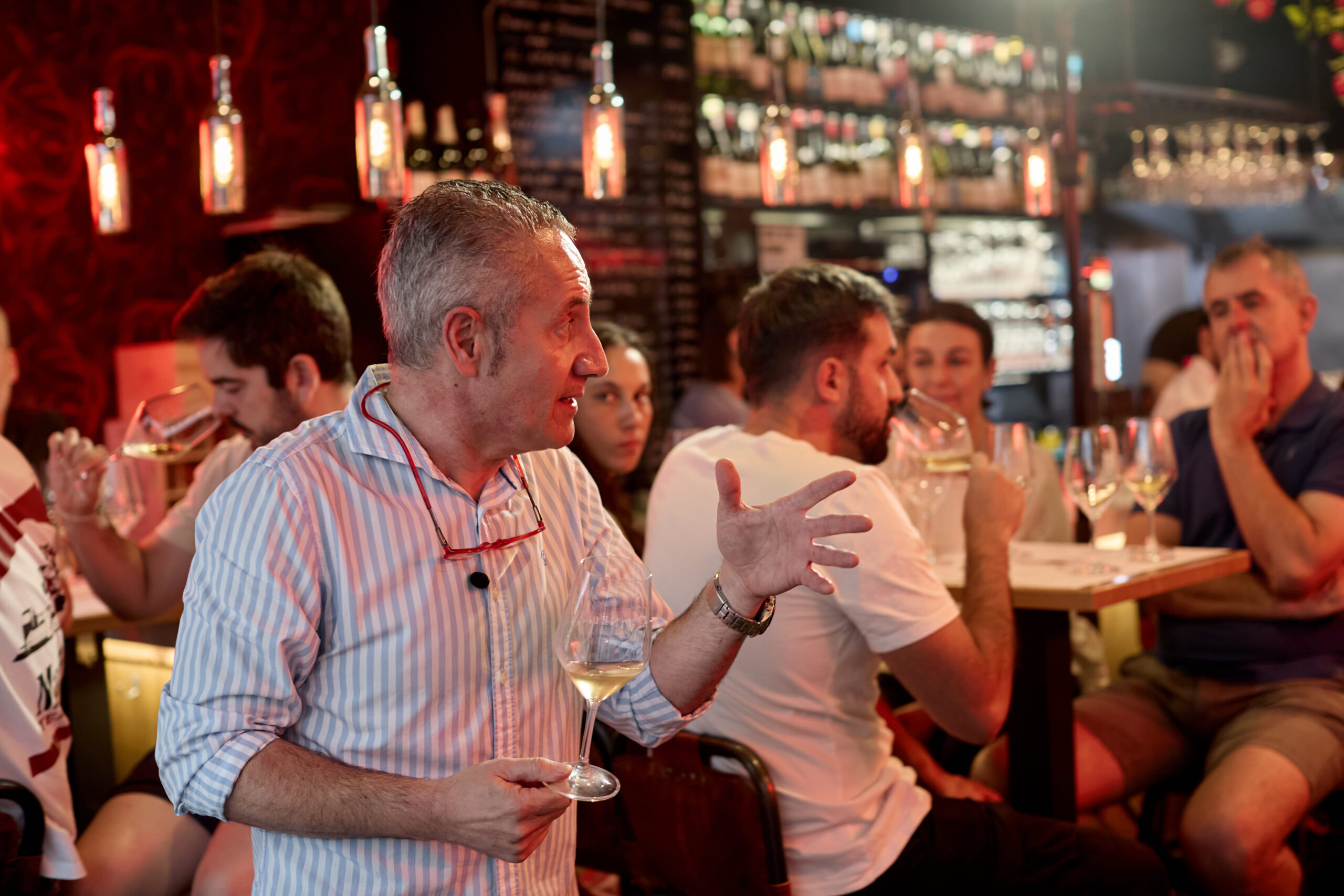 Marco (de Casa de Vinos Doctrinos) vs Luis Miguel (yo, Winelovers) — 6 vinos, 3 tapas al momento, risas y sorpresas