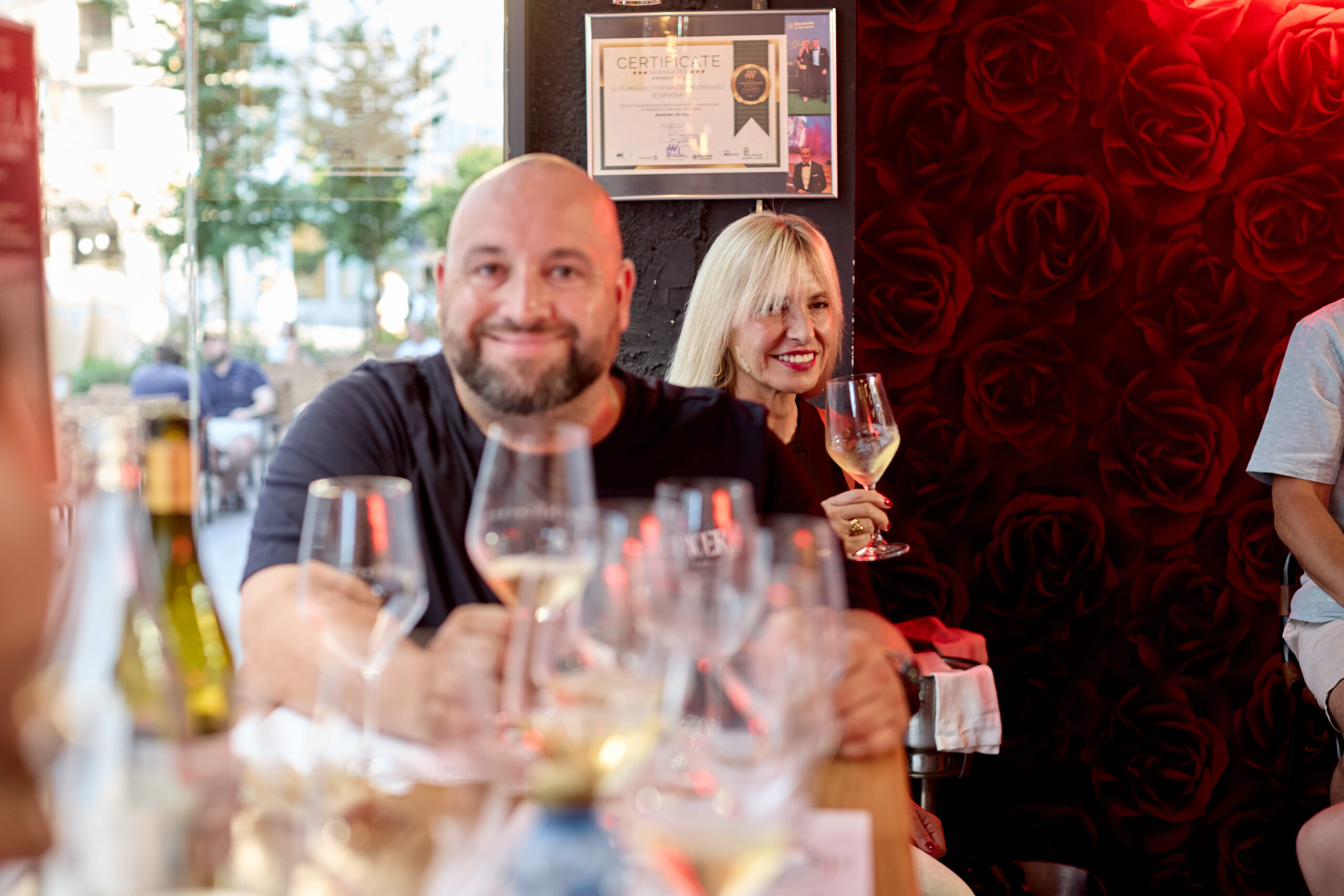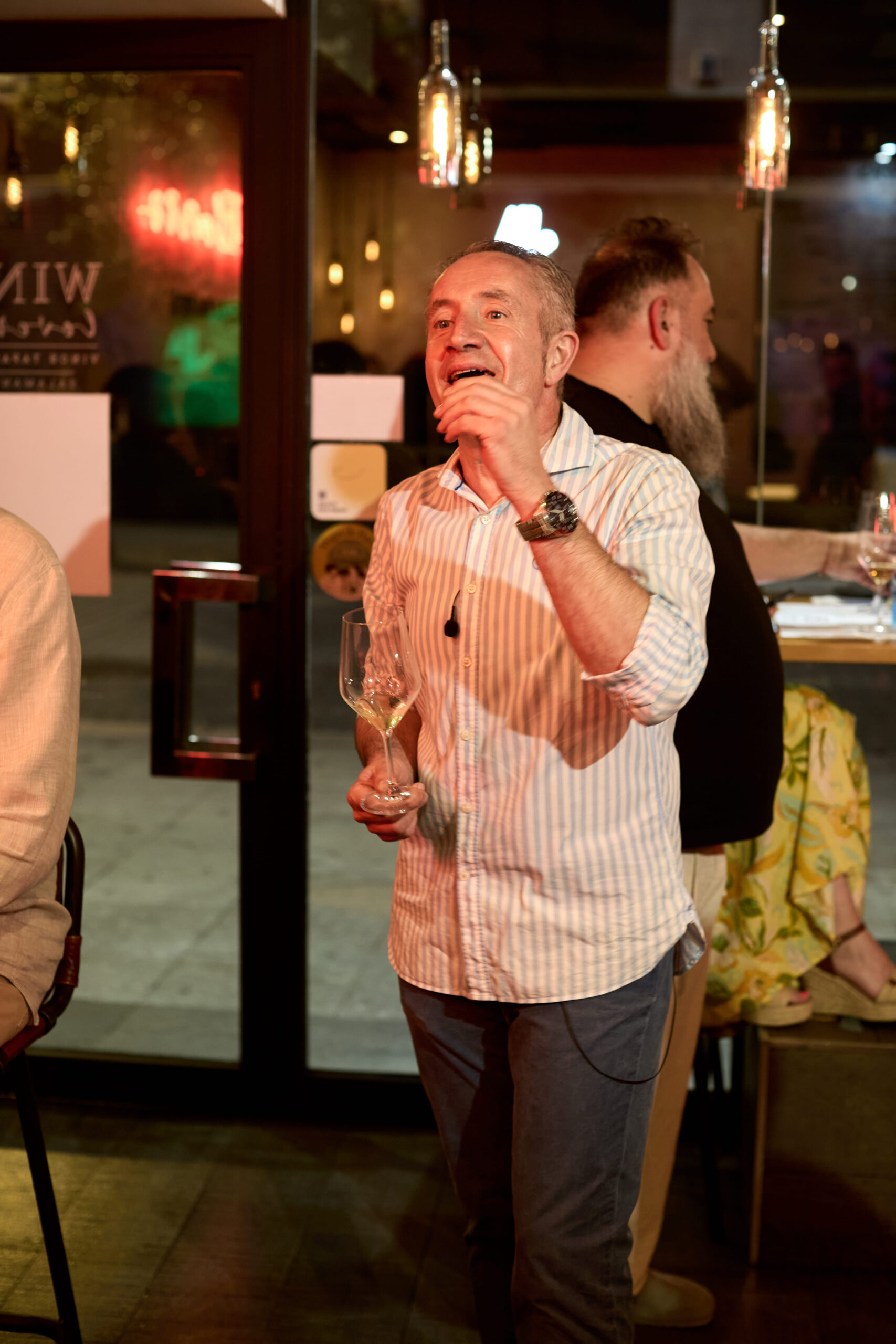 Durante el evento nos fuimos alternando, cada uno un vino, luego comentamos cosas de cada vino. Los vinos están elegidos pensando también en la época del año, o sea, porque si no serían más tintos que blancos y serían, no, y es al revés.