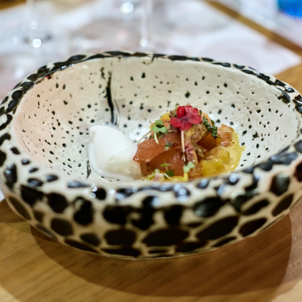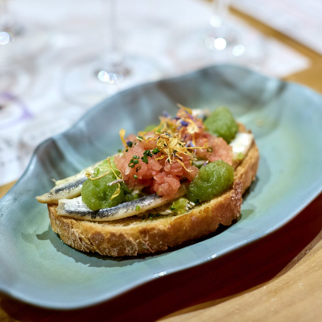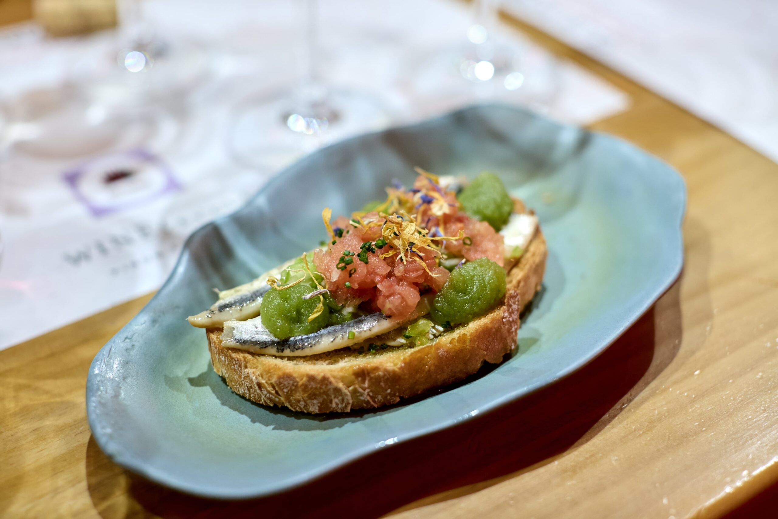 Terminada la cata Juanma Melchor, jefe de cocina de El Pecado Restaurante nos presentó las tres deliciosas tapas que elaboró al momento