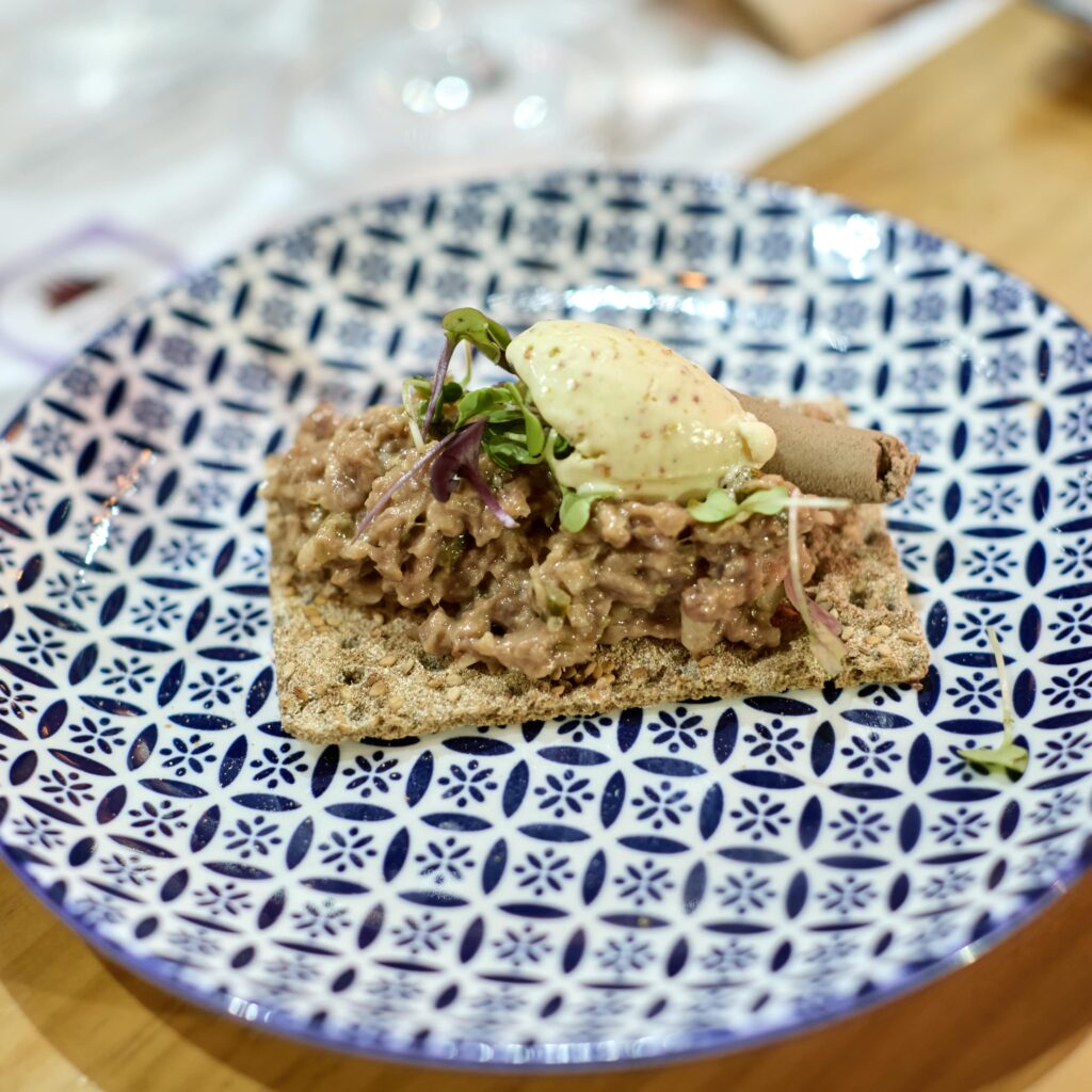 ▫️ Steak tartar de ternera charra con foie y helado de mostaza