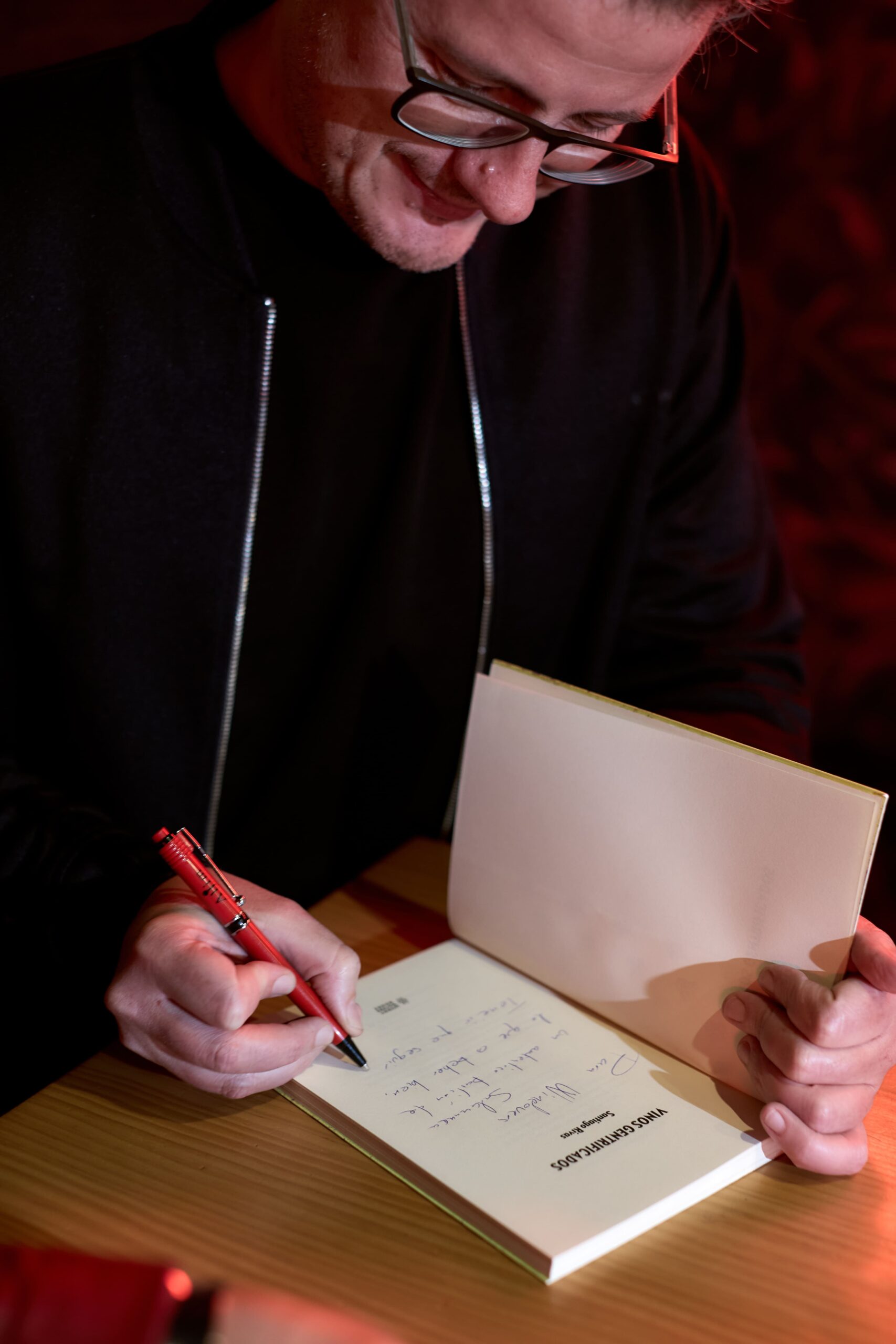 Peeero… en Winelovers somos tremendos, porque después de 3 horas de cata que nos ofreció Santi y a las 11 de la noche, la fiesta continuó con nuestro famoso sorteo: dos libros de Santi Rivas que además dedicó personalmente.